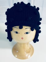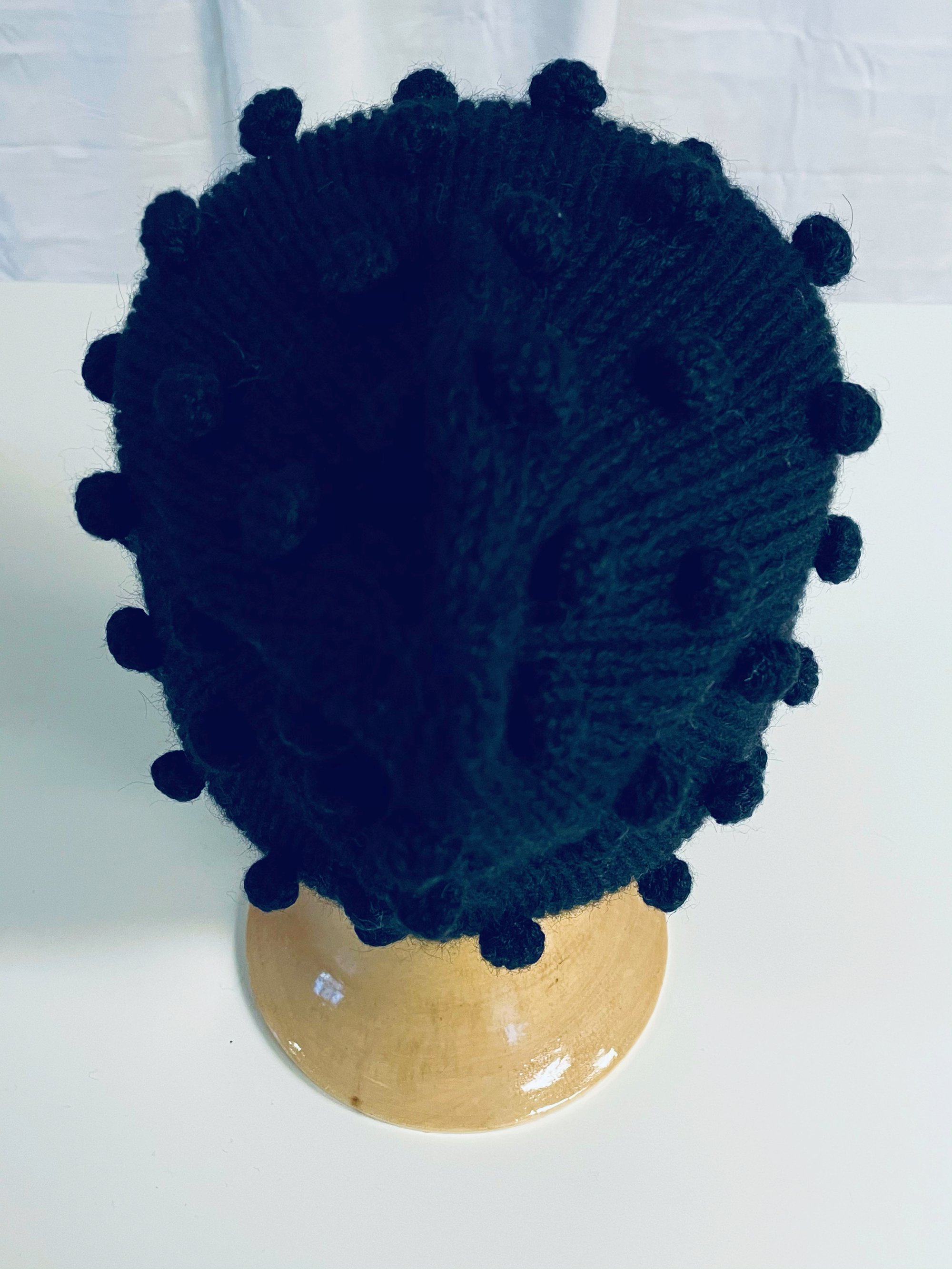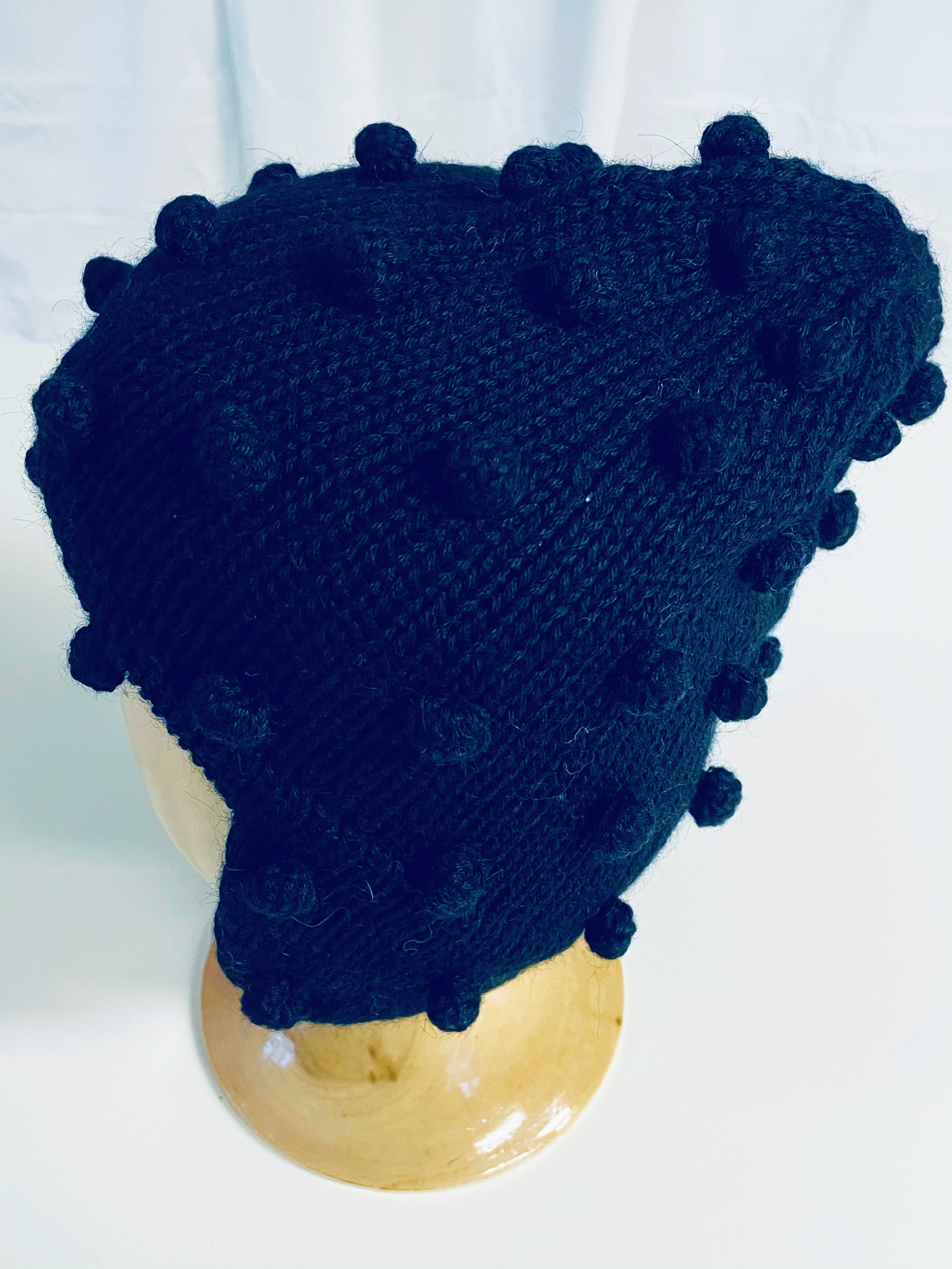 Black, soft and warm woolly hat with knitted dots in. 100% alpaca wool witch is the softest wool fiber and totally itch free.