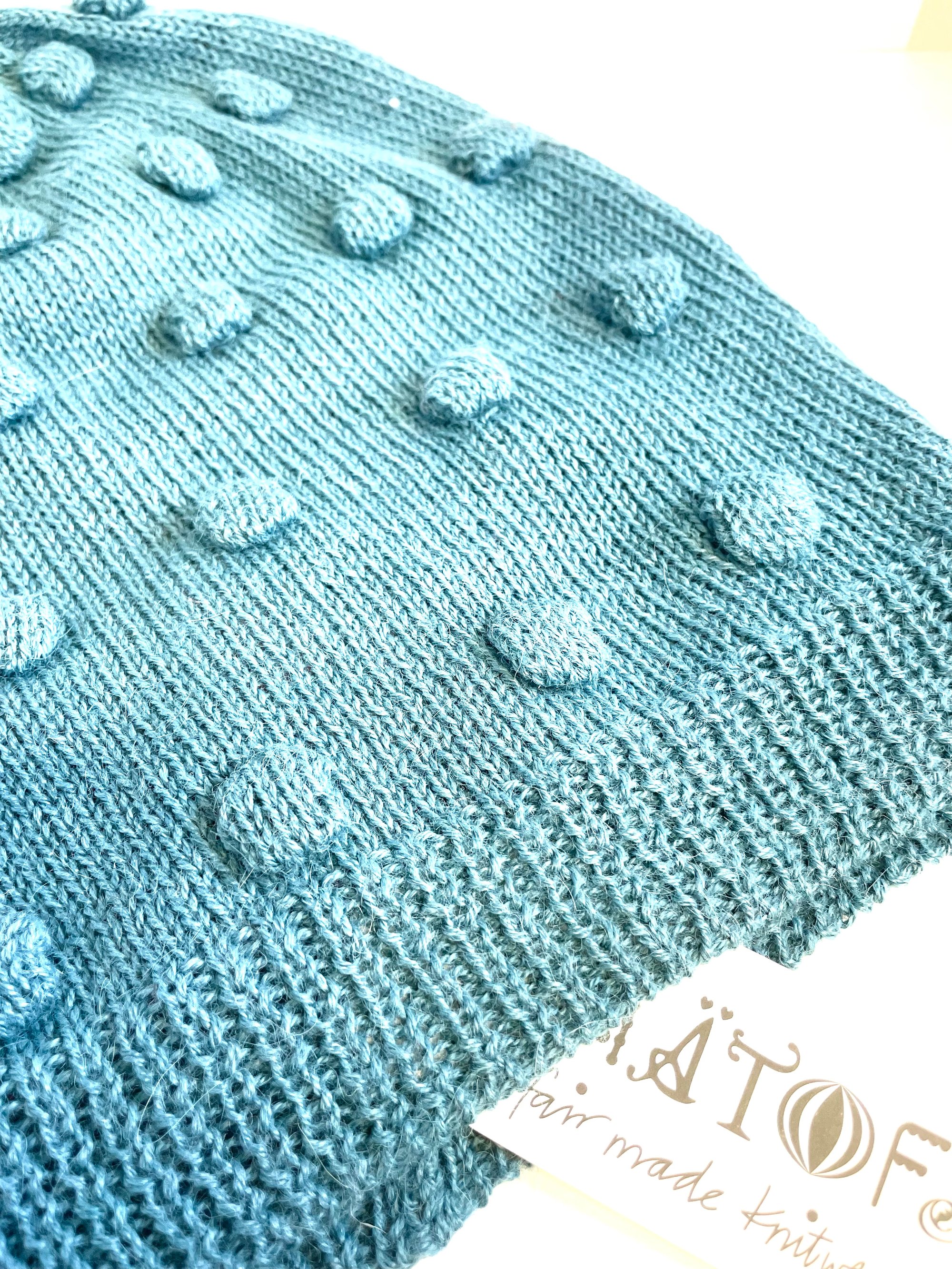 Soft and warm woolly hat with knitted dots. 100% alpaca wool witch is the softest wool fiber and totally itch free.