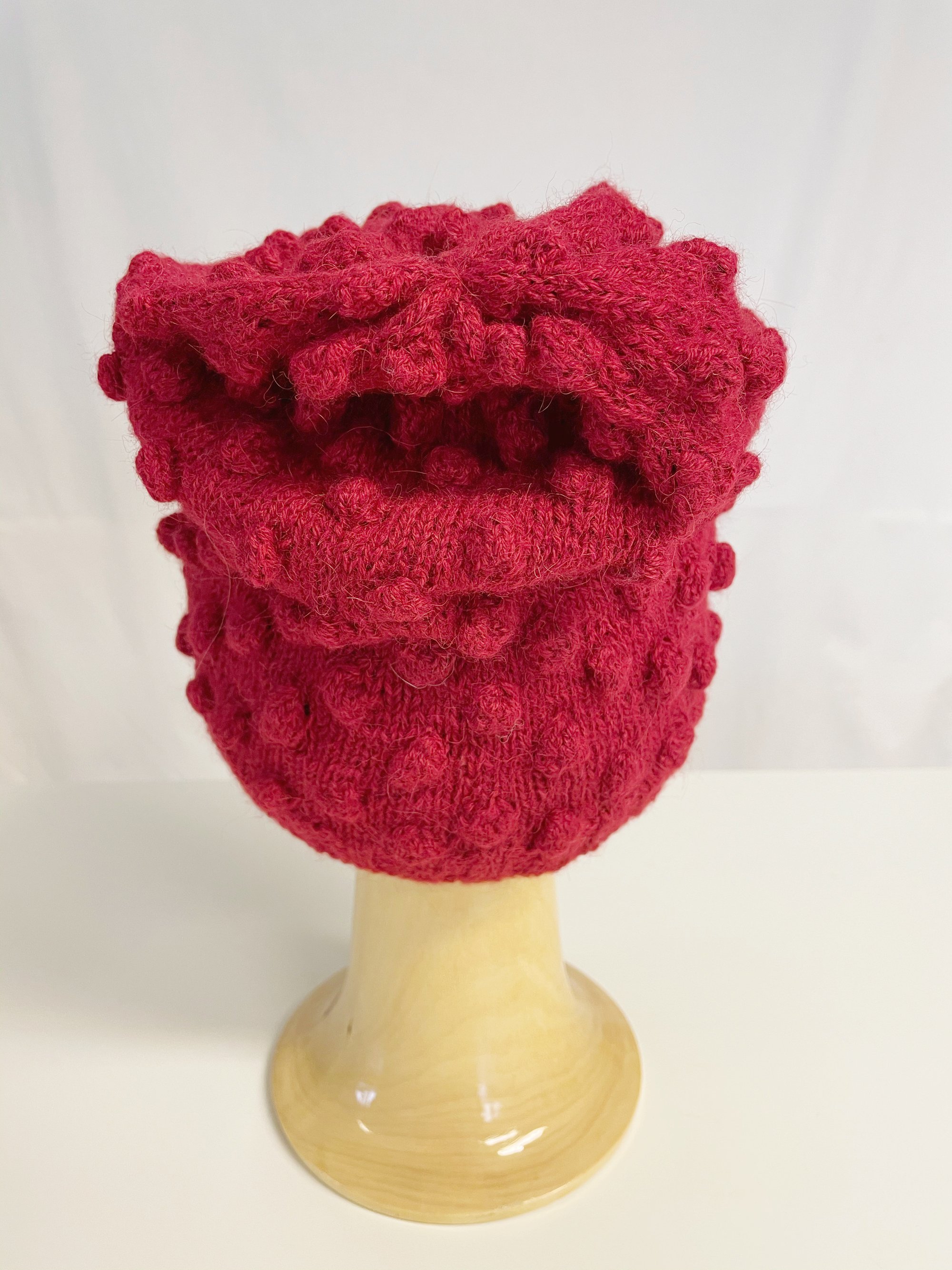 Red, soft and warm woolly hat with knitted dots. 100% alpaca wool witch is the softest wool fiber and totally itch free.