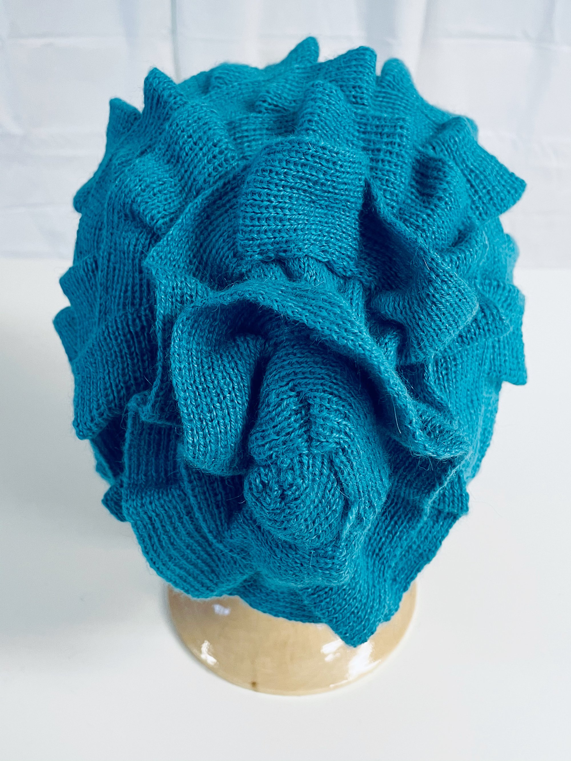Turquoise, soft and warm woolly hat inspired by morels. 100% alpaca wool witch is the softest wool fiber and totally itch free.