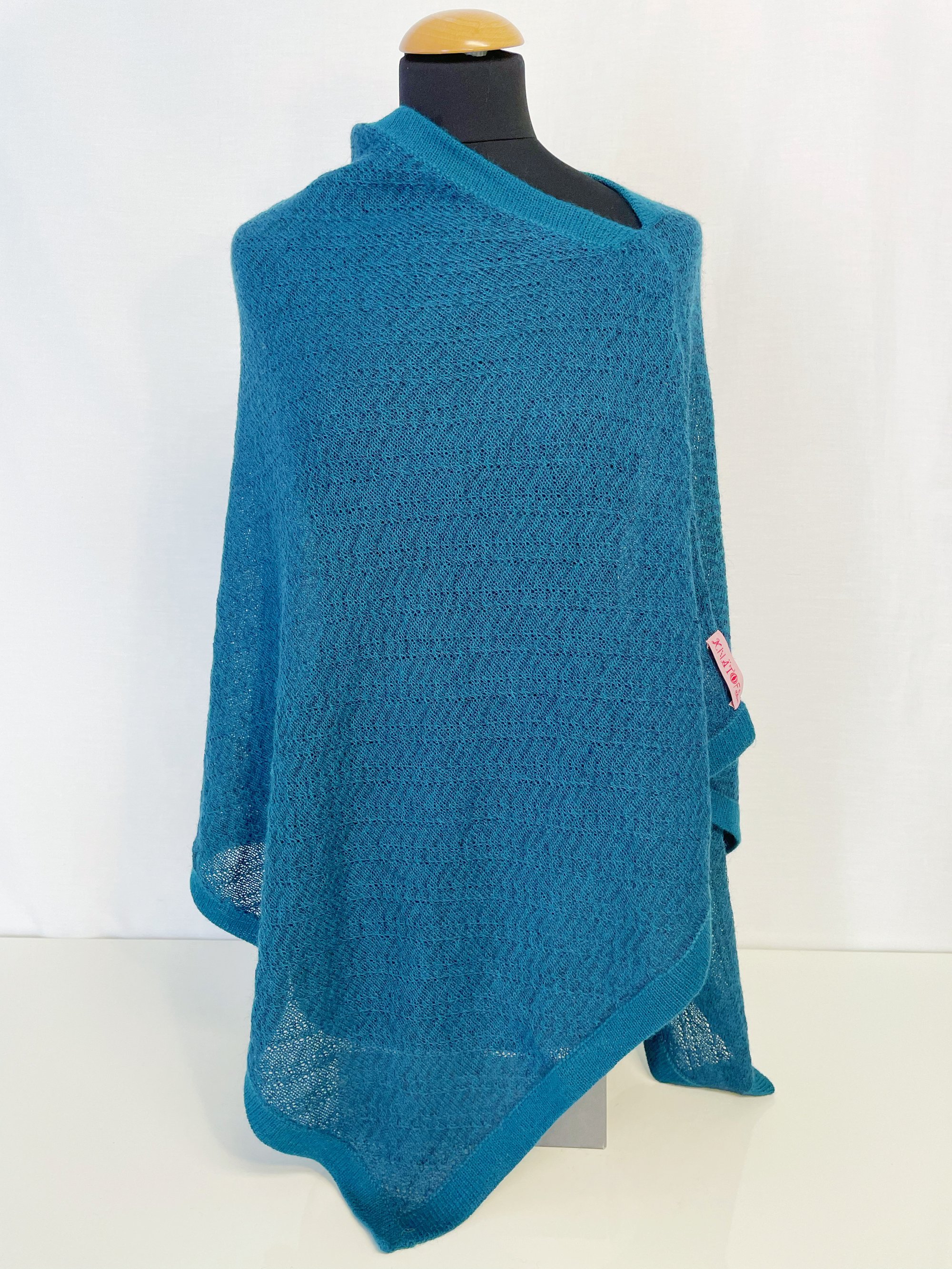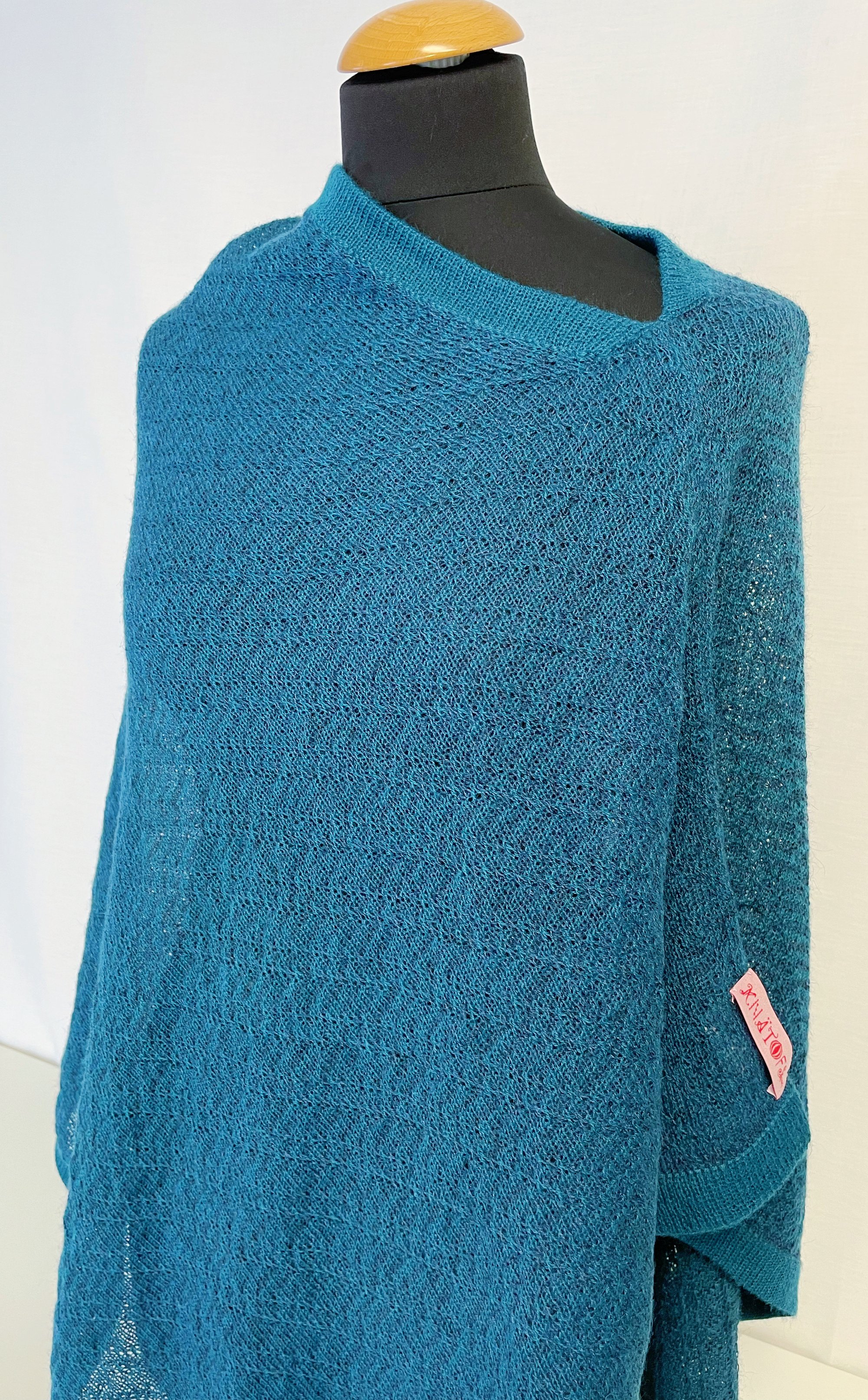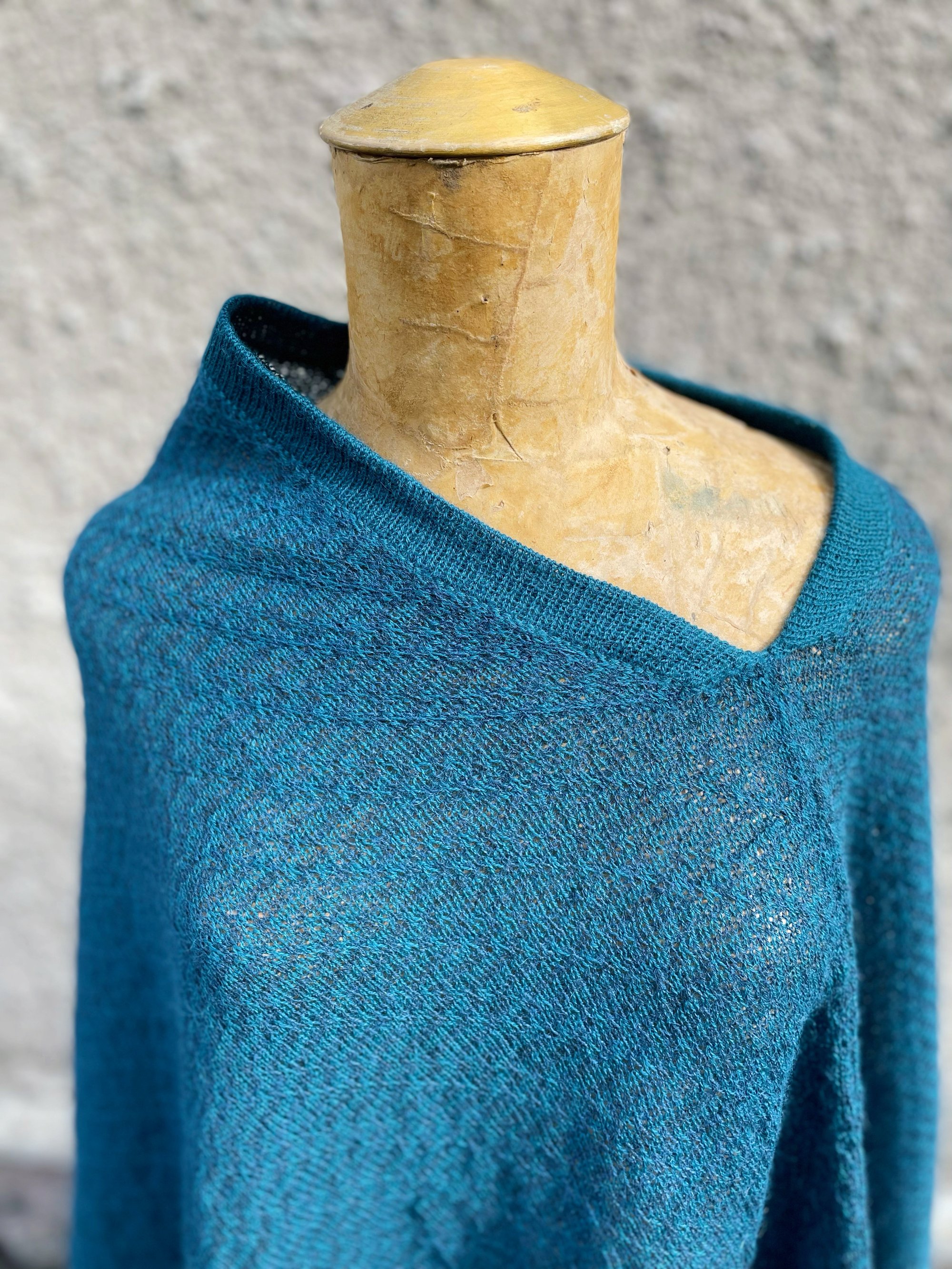 Our poncho Ocean is a two coloured, fine knitted poncho. The colours petrole and blue giving the poncho a subtle shift in colour just like waves over the ocean. Made of the softest alpaca wool under fair conditions in Bolivia. Wear it with a pair of nice trousers, blouse and high heels or wrap it like a scarf under a warm coat.