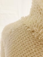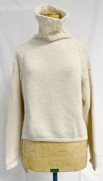 A warm and cosy sweater with a modern twist, here in off white. The cut is straight and with a longer "tail" at the back. On the shoulders and collar there are loops that creates texture and adds details. Knitted in Bolivia in limited edition, collab with guest designer Camilla Boström.